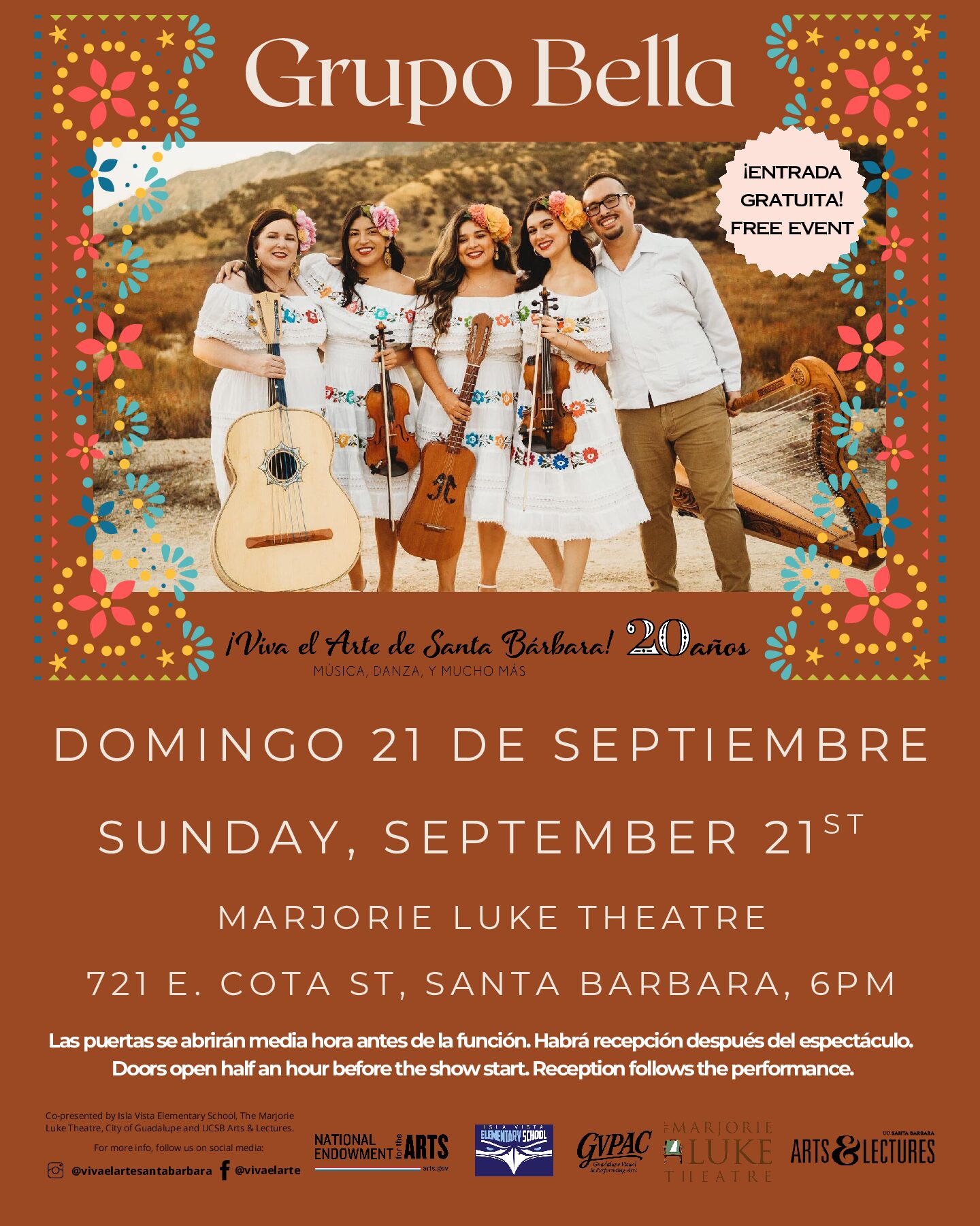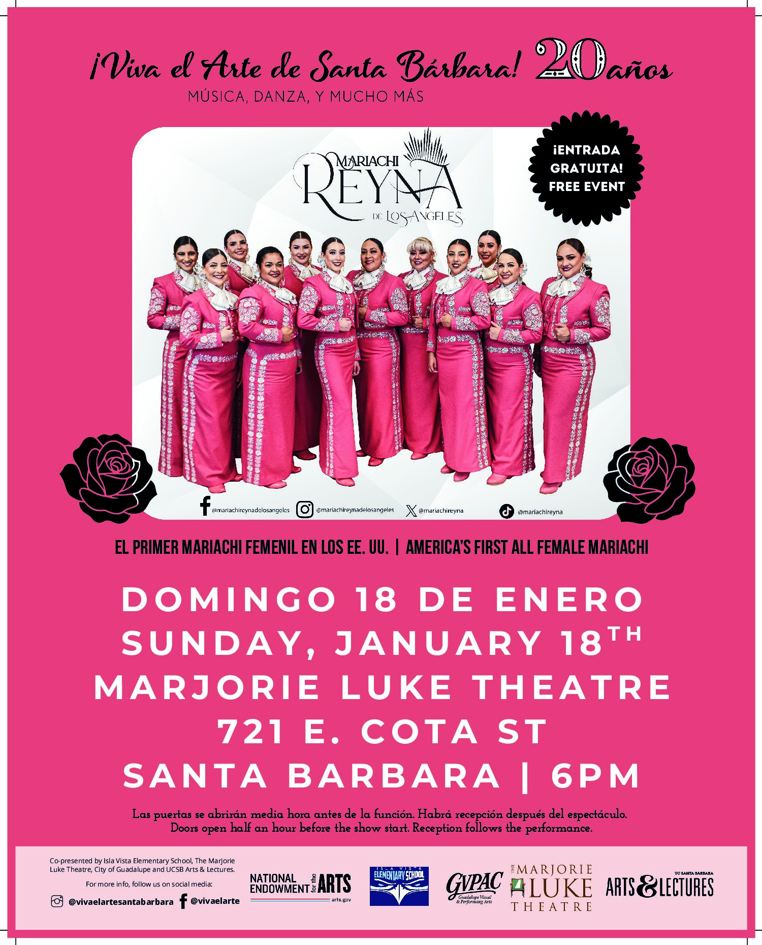 The Marjorie Luke Theatre and UCSB Arts & Lectures present this FREE family performance as part of this seasons 2018-2019 Viva el Arte Santa Barbara series. Two-time Grammy winners, Mariachi...
